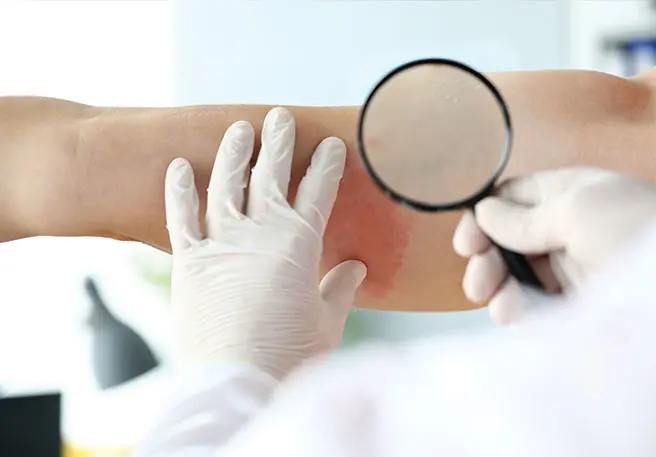 Typisch für eine Windeldermatitis sind gerötete Hautstellen. Häufig bilden sich darauf nässende Bläschen und die Haut schwillt an. Manchmal lösen sich auch weißliche Schuppen. Die geröteten und wunden Stellen am Po schmerzen bei Berührung. Wenn ihr Kind also scheinbar grundlos beim Strampeln schreit und weint, sollten Sie einen Blick unter die Windel werfen, ob sich ein Windelausschlag gebildet hat.